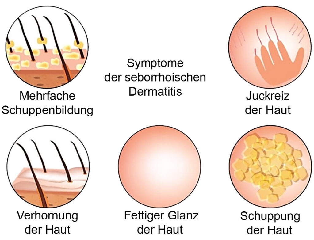 Häufige Symptome der seborrhoischen Dermatitis: