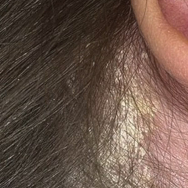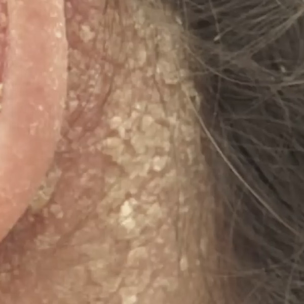 Auf der betroffenen Haut können sich manchmal Krusten bilden, und es können sich Läsionen entwickeln, die Hauttalg enthalten. Auch Erythem oder Hautrötungen, verursacht durch Entzündungen, können auftreten. Wenn es in den Falten am Haaransatz zu Schüben kommt, können diejenigen, die in den betroffenen Bereichen stark jucken, auch Haarausfall bemerken.
