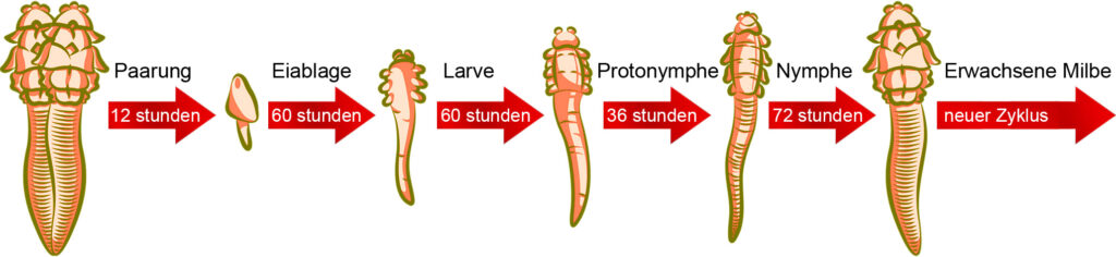 Lebenszyklus der Demodex-Milben: Vom Ei zum erwachsenen Individuum in 228 Stunden